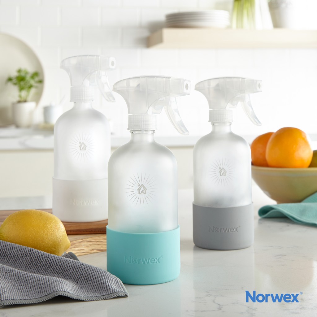 Unscrew the spray nozzle and fill with water or any dilutable Norwex cleaning product following dilution instructions on the product label.