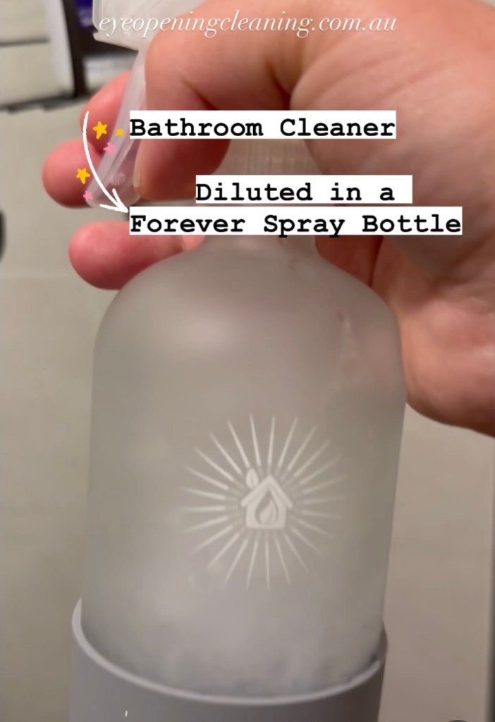 I love to use it with the forever Spray Bottle & dilute 30mls of Bathroom Cleaner with 210mls. of water. Discard unused product within 3 months and clean and dry the bottle for next use. HOWEVER you can also add a small squirt to the surface or a cloth (it’s very concentrated) and spread with a Norwex cloth.