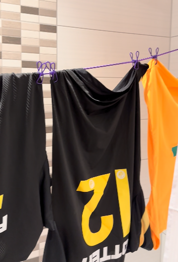 I hung them in warm places in the room, on top of shower rails, used coat hangers and we also had a travel clothes line which was super handy! When you travel, you use what you have! 🙂